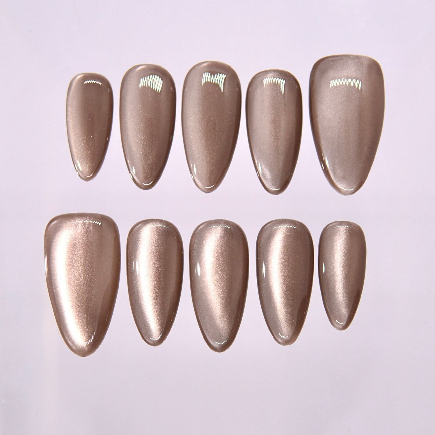 - Sheer cat eye finish with a calm metallic glow